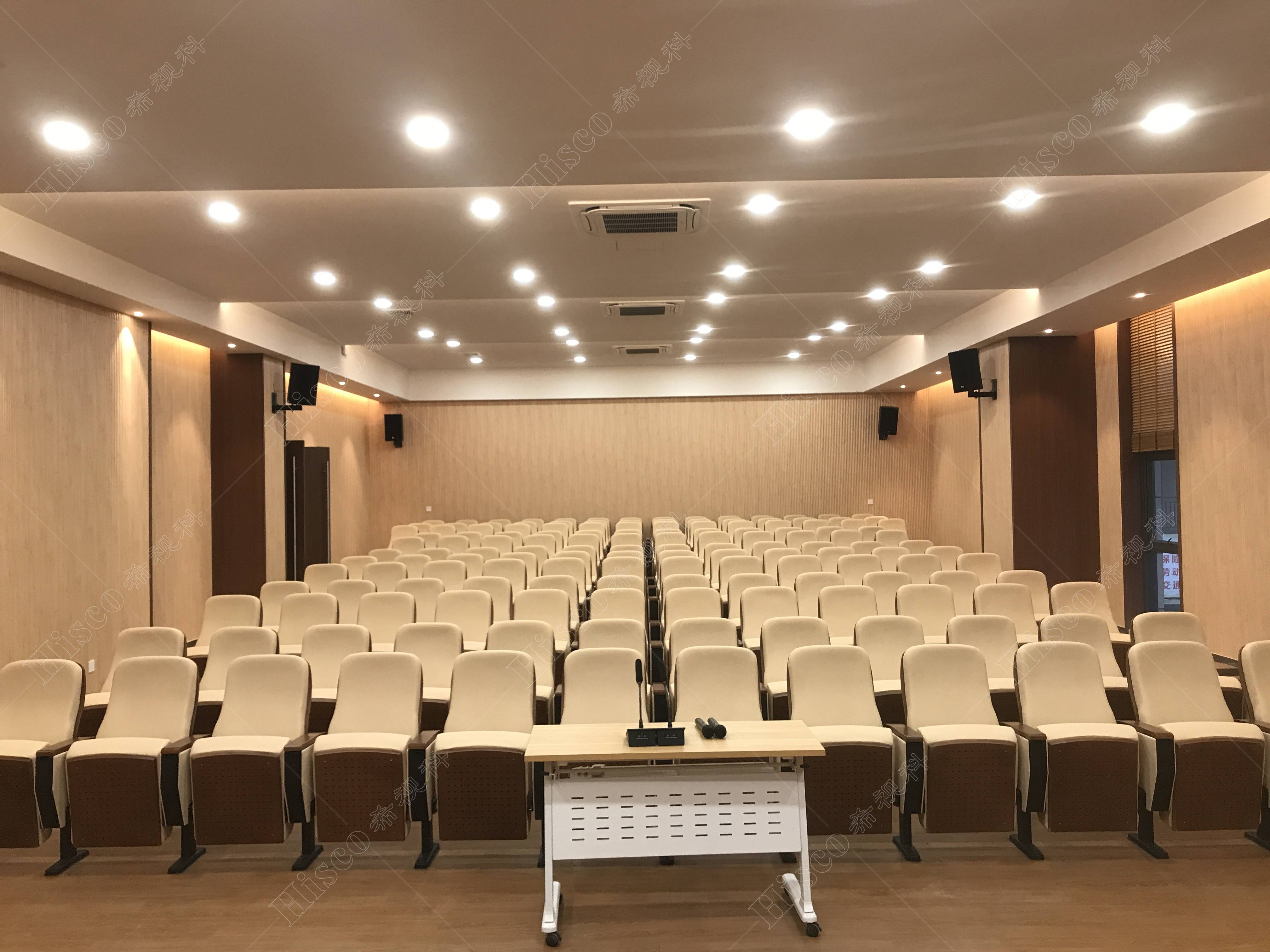 会议室内需要建设扩声系统、会议系统、显示系统,智能化系统等,主要满足日常开会的讨论、发言等等。综合礼堂的设计,追求语言的清晰度和饱和度,声压级级要求达到国家厅堂扩声系统一级标准。同时预留了丰富的接口,方便以后系统的扩展,实现整个系统的强大功能。