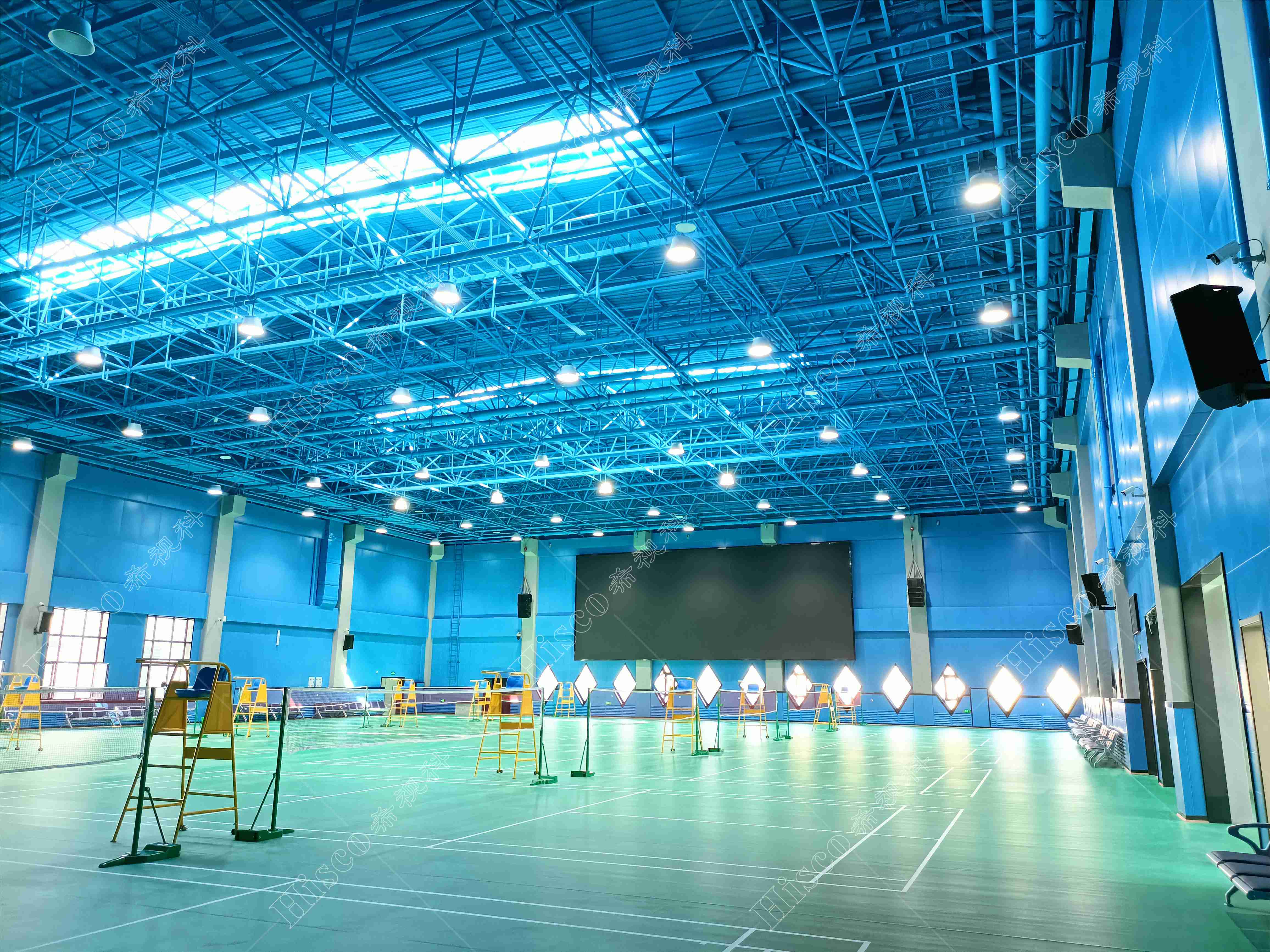 综合球馆是市民体育锻炼,举办各种体育赛事、集会,及演出的场所。综合球馆容积比较大而建声条件又并不是很好,厅内声音容易浑浊,而现场需要把清新自然的声音传送给观众,这就要求我们在有限的条件下,使听音者尽可能多的听到直达声,保证其优异的声压级、良好的语言清晰度、均匀的声场。